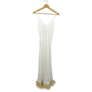 Sleeper milk Punch Feather Trim Slip Maxi Dress