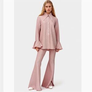 Sleeper Venera Lurex Lounge Suit Set Top and Pants in pink shimmer Flared Cuffs