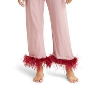 Sleeper Pink/Red Pajama Double Ostrich Feather Pants & Button Up NWT $395.00