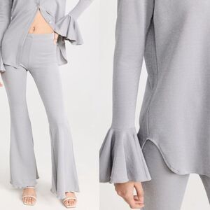 Sleeper Venera Lurex Lounge Suit Set Top and Pants Silver Flared Cuffs NWT $350