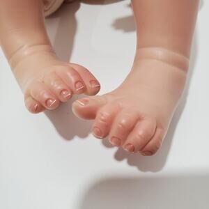 Under the chin, there are some letters that have transferred. I have wiped and clean it but cannot get it off. You can see some of the plastic coming at three seams ( both legs and one arm.,...see photos). Does not affect use of the doll.