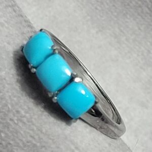 Let the charm of the Sleeping Beauty Turquoise sweep you off your feet. With cushioned-shaped gems set in stainless steel, this 3 stone ring is more than an adornment - it's an anthem of love, time, and dreams. A trilogy of stories, all wrapped up in one breathtaking ring. (Size 9) 1.60 ctw