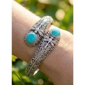 Sleeping Beauty Turquoise 925 Sterling Silver Balinese Filigree Dragonfly Bangle