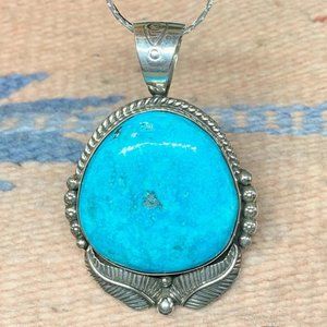 This is a Sleeping Beauty Turquoise Pendant. Our jewelry is made by master jewelry craftsmen, everything is stamped with the initials of the craftsman. All of our turquoise is the highest grade available, and some is gem grade. It comes from mines in Arizona, Nevada, and New Mexico.