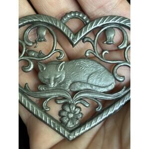 Sleeping Cat Pewter Ornament Unpainted By Wilhelm Schweizer 2 3/4" x2" Cat Art Ornament. The ornament is in good condition, see photos.