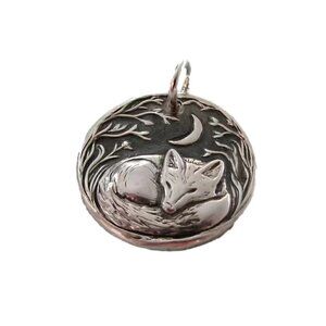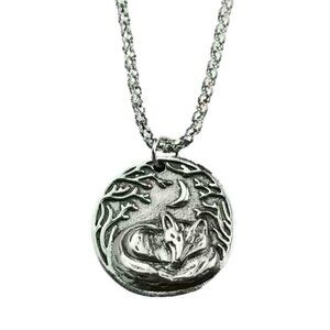 Sleeping Fox under the Moon Necklace and Pendant #1401