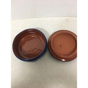 HANDMADE MEXICAN FOLK ART POTTERY COLORFUL BEAUTIFUL ROUND TRINKET BOXIN EXCELLENT CONDITION MEASURES 1.5" H X 3.75" W