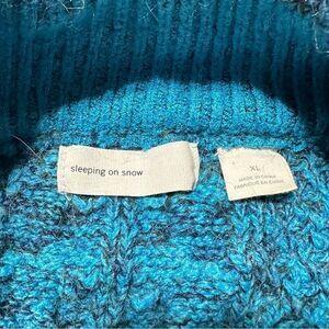 Sleeping On Snow Alpaca Wool Sweater Off The Shoulder Turquoise Cable Knit XL