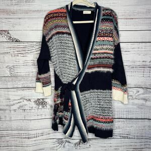 Sleeping On Snow Anthropologie Fair Isle Belted Cardigan Sweater Women’s XS/S Boho Knit