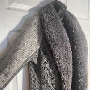 Sleeping On Snow Cardigan Women Large Gray Penny Lane Wool Yak Blend Cable Knit