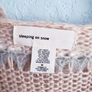 Sleeping On Snow Cream Striped Open Knit Button Down Belted Wool Blend Cardigan
