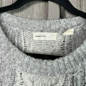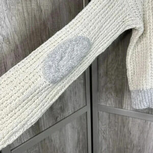 Sleeping On Snow Sweater Womens Medium Cable Knit Elbow Patch Cream and Gray