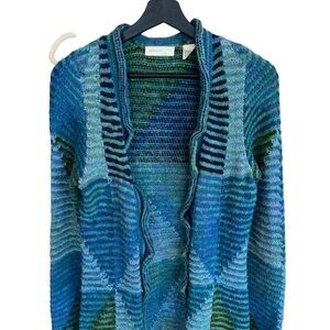 Sleeping on Snow Anthropologie Geo Knit Longline Cardigan Blue Multi Small Wool