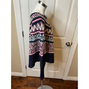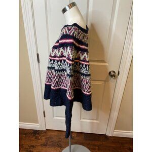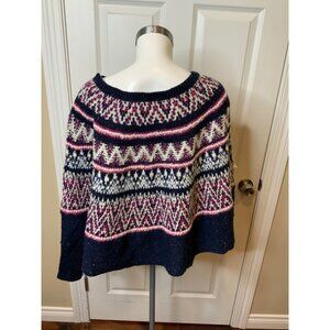 * Navy blue, pink & white Nordic patterned pullover poncho sweater