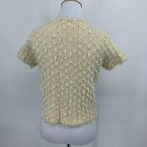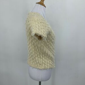 SLEEPING ON SNOW EYELASH SWEATER SIZE S IVORY FULL ZIP SHORT SLEEVE WOOL BLEND