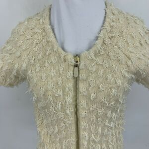 Sleeping on Snow Eyelash Sweater Size S Ivory Full Zip Short Sleeve Wool Blend