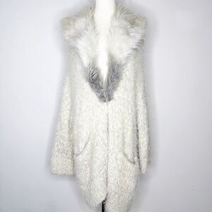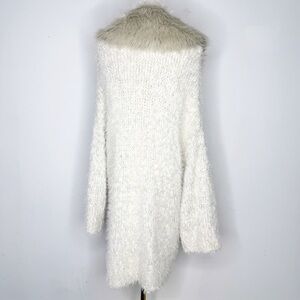 Sleeping on Snow Faux Fur Collar Sweater Cardigan M Anthropologie Ivory Shaggy Knit