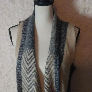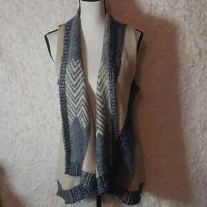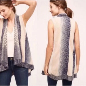 Sleeping on Snow Sleeveless Knit Open Front Drapey Cream Tan Blue Vest Cardigan