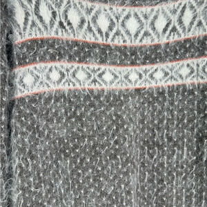 Off the shoulder, Nordic pattern, Eyelashe wool texture, wool blend, tunic length or mini dress, ski lodge vibes.