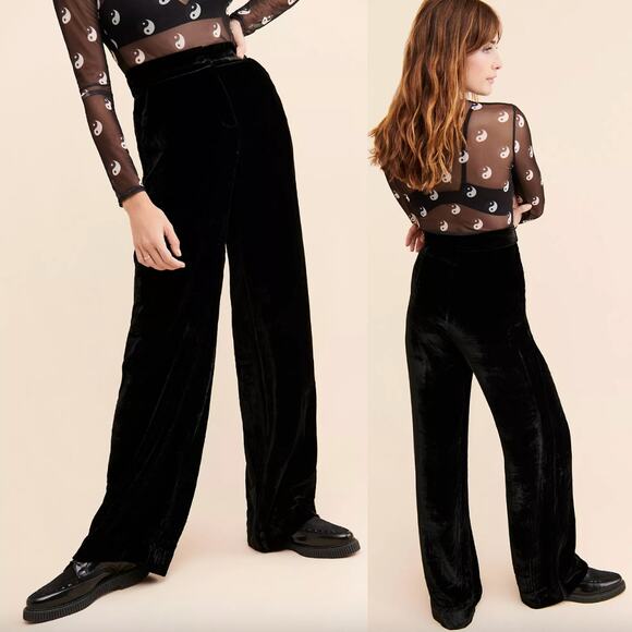 Sleeping with Jacques | Dinner Party Silk Velvet Wide Leg Pants in Black 1 / S