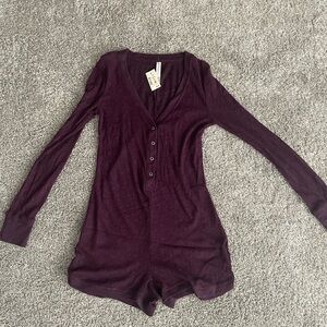 Loungewear/ sleep set romper, super soft and stretchy lounge set. Never worn. Deep purple/maroon. Size small. From aerie.
