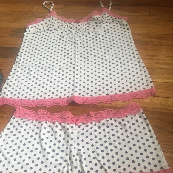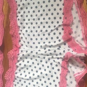 Cute black and white polkadotted sleepwear with pink lace and pink bow