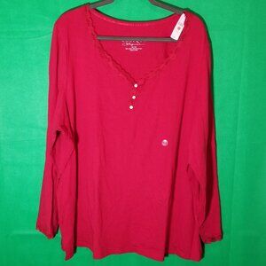 Sleepwear by Cacique Size 26-28 Red Knit V-Neck Long Sleeve Lace Trim NWT