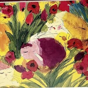 Original Framed Pencil Drawing Watercolor of Cats Sleeping in the Garden CUTE! Framed 8.75". Beautifully matted and framed. This exquisite original framed pencil drawing watercolor captures the serene scene of four charming cats peacefully sleeping in the garden. Measuring 8.75 inches, this unique artwork will add a touch of whimsy and tranquility to any space. Perfect for cat lovers and art enthusiasts alike, this one-of-a-kind piece is sure to bring warmth and character to your home décor. A lovely addition to your collection or a thoughtful gift for a feline aficionado.