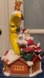 A sleeping Santa rests while a snow buddy swings on the moon with reindeer above. This pice is missing the bottomm and looks likes it could have been a smoker or a bank.