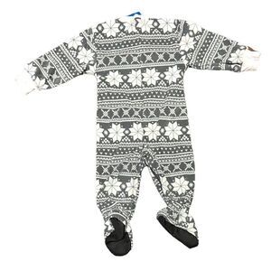 Get ready for the colder months with this super plush fleece SleepytimePjs footed all-over grey and white snowflake print onesie.
