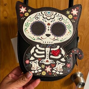 Sleepyville Critters Sugar Skull Cat Crossbody Bag