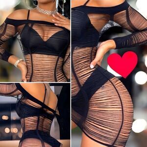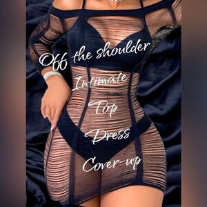 Sleeved l Off the shoulder l Black Stringy Dress Top Intimate l New