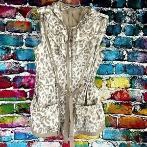 Sleeveless Animal Print Reversible Hooded Outdoor Vest Jacket Small