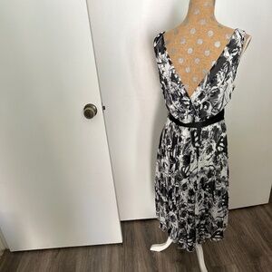 EUC. No stains, tears, rips or pulls. V-neck in front and back. No zippers or hooks. Goes on over your head. Fully lined. Sash has loops on sides and front to insure sash stays put. Super feminine. Full skirt. Great for dancing.