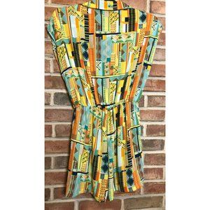 Sleeveless Aztec Design Collared V-Neck Elastic Waist Romper Sz M Pockets Flowy