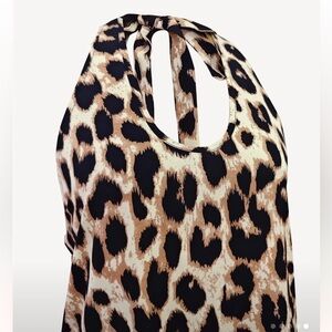 Turn heads with the captivating backless design of this Sleeveless Leopard Print Maxi Dress. Crafted from lightweight and comfortable 100% polyester, this dress features a stylish backless cut that adds a touch of drama and allure. The fitted halter neck bodice gracefully flows into a tiered maxi skirt, ensuring a flattering silhouette. Perfect for summer days and evenings, or layered for other seasons, this dress offers both style and ease. Make a statement and showcase your unique flair with this chic and breezy midi dress.