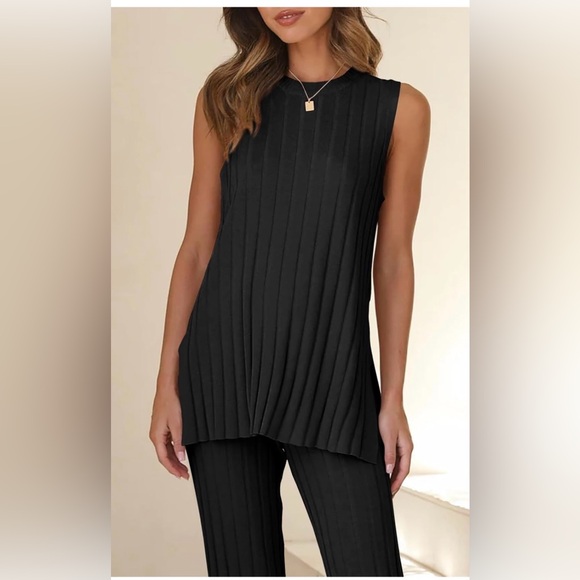 Sleeveless Black Ribbed Knit Set