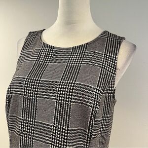 Sleeveless Black and White houndstooth Plaid print knee length Dress