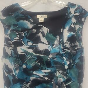 Stunning top with a striking blue and black design. Ideal for versatile styling.