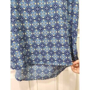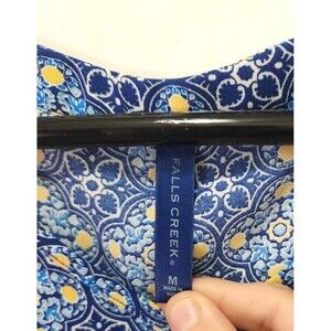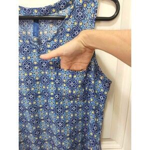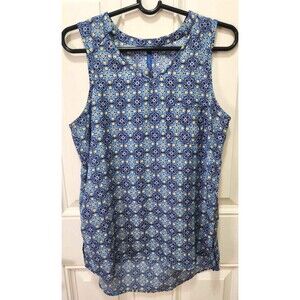 Sleeveless Blue Floral Blouse Tank Front Pocket Womens Size Medium
