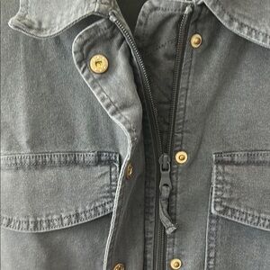 Amazing vest! Zipper and buttons. Side cinches inside.
