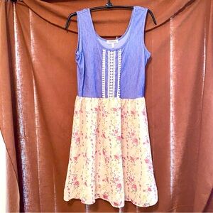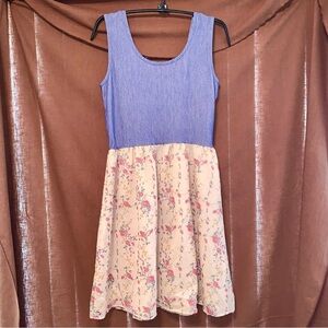 Sleeveless Blue with Cream & Floral Pattern Dress size Medium
