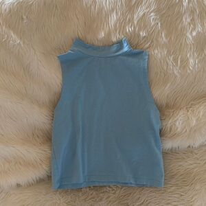 Elevate your wardrobe with this stylish sleeveless blue mock neck top. Perfect for any occasion, this top offers a chic and modern look.