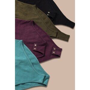Soft and stretchy fabric ensures comfortable wear. Racer back design allows for ease of movement, while snap closures provide convenience.