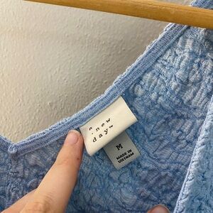 Stylish light blue tank top with a textured finish. Sleeveless design for versatile wear. In great condition, no flaws.