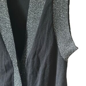 Keywords: sleeveless cardigan, cardigan vest, open front vest, long vest, knit vest, black vest, gray vest, casual vest, womens vest, pockets, layering vest, sleeveless sweater, medium vest