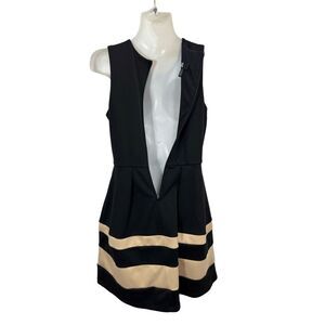 Sleeveless Cocktail Dress Fit & Flare Black Tan Stripes Size 3 Keyhole Neckline