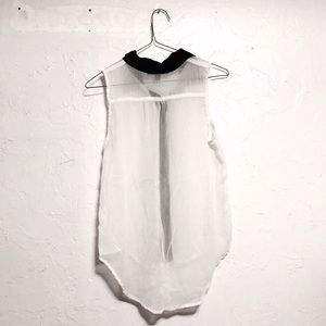 Sleeveless button down with collars. See through and very thin fabric.