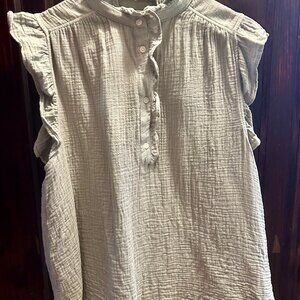 Sleeveless Crinkle Gauze Top light blue, buttons, frill shoulders & collar NWOT