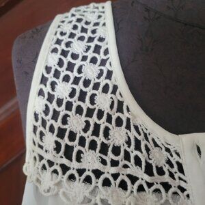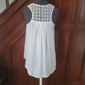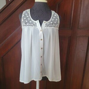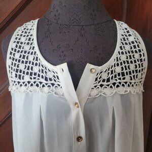 Sleeveless Crochet Lace Insert Button-Down Blouse - Monteau - Medium - White